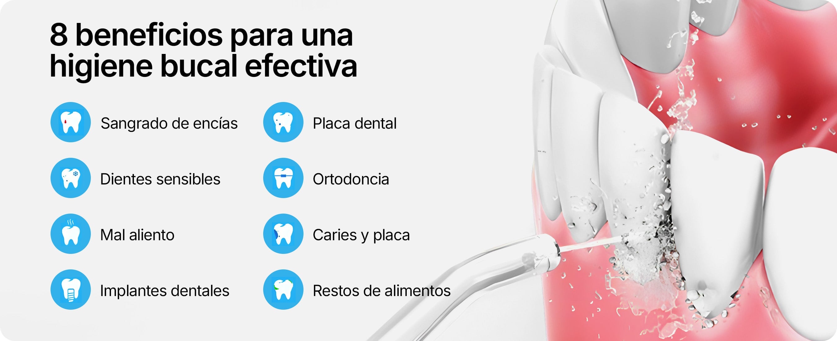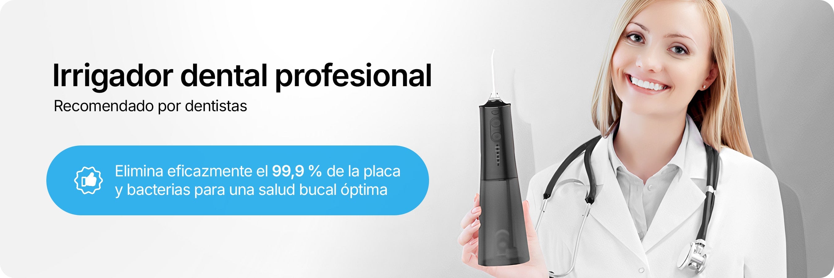 Irrigador dental, 4 boquillas, cable de carga, manual de instrucciones